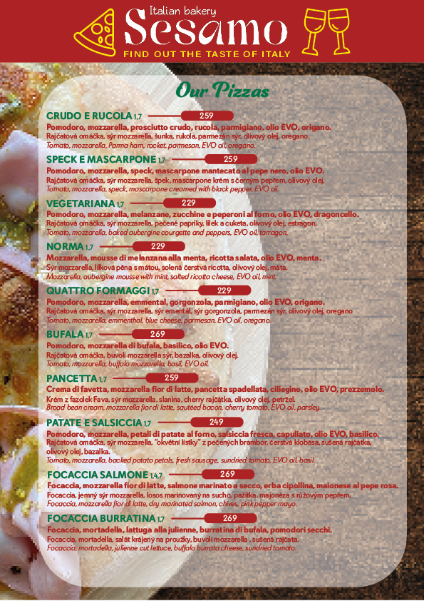 Various New Year menu created for an Italian restarurant in Czech Republic
